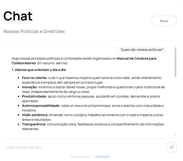 Para os novos colaboradores, o onboarding se tornou mais simples, acolhedor e humanizado, quem está chegando consegue entender rapidamente a cultura, os processos e as responsabilidades, enquanto quem já faz parte do time tem um canal organizado para atualizações, treinamentos e alinhamentos. Isso gera mais segurança, engajamento e produtividade para todos.