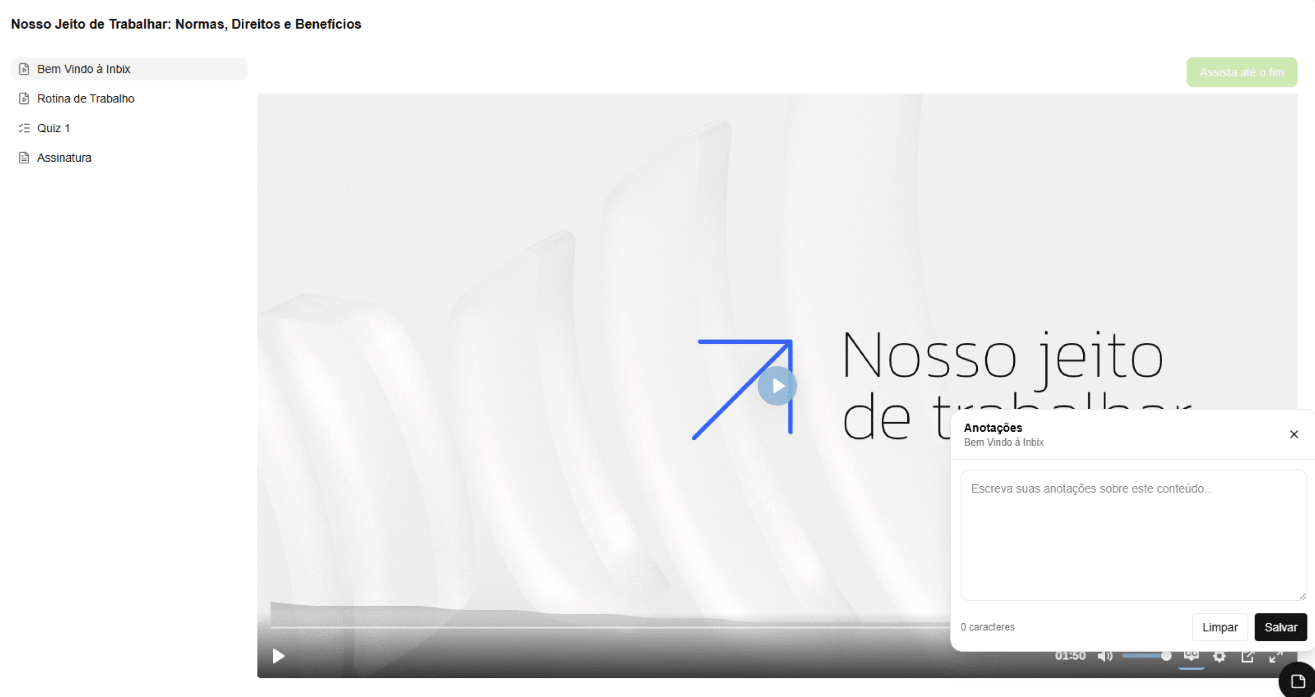 Com a Inbix, o onboarding se conecta naturalmente aos treinamentos, programas de desenvolvimento e à base de conhecimento da empresa.